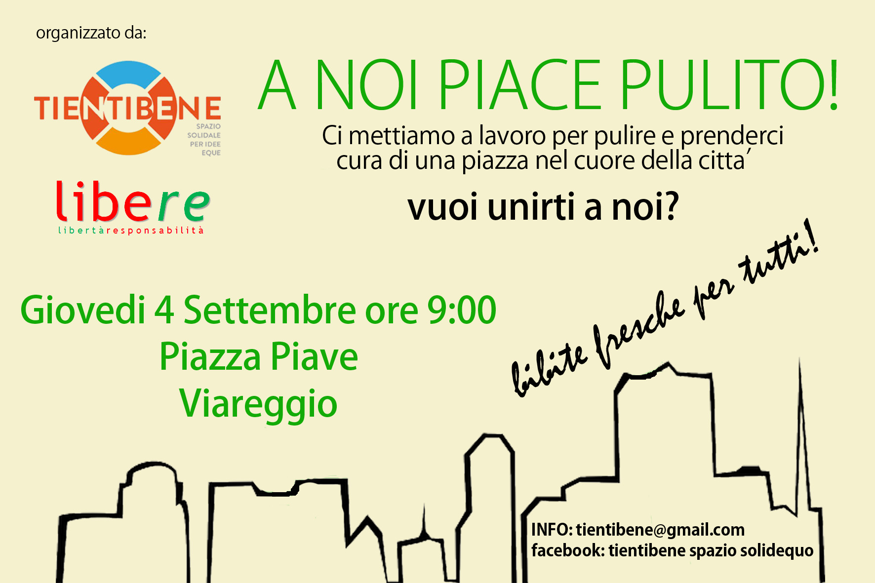 Una piazza è un posto di tutti, un’occasione di incontro, un luogo in cui si vive la città. Per questo Tientibene Spazio Solidale per Idee Eque e Associazione Libere hanno deciso di dare vita ad un’esperienza di cittadinanza attiva e di partecipazione adottando Piazza Piave a Viareggio, un luogo centrale della città che versa da alcuni anni in condizioni di degrado.
